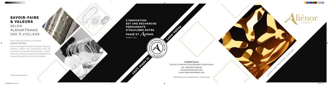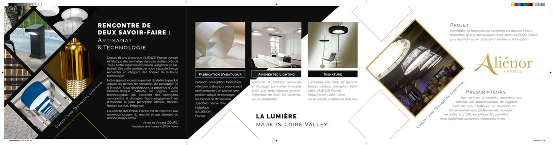 Création et design de la plaquette : triptyque 29,7 x 21 cm fermé, 89,1 x 21 cm ouvert
