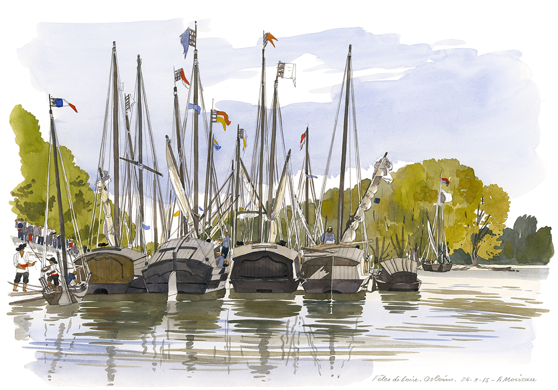 Aquarelle d'une scène prise pendant les fêtes de Loire à Orléans en septembre 2015.